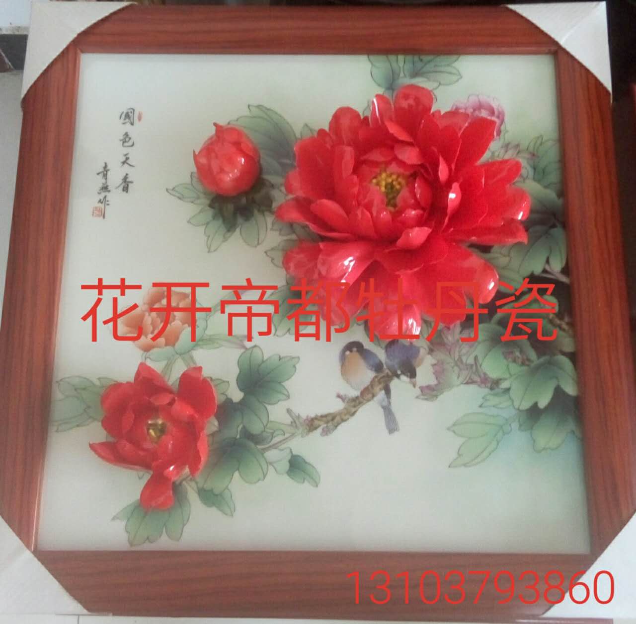 產(chǎn)品系列主要包括:牡丹瓷花盤、牡丹瓷屏風(fēng)、牡丹瓷盆景、牡丹瓷壁掛和牡丹瓷鼎,形式多種多樣!每一件作品都是藝術(shù)的結(jié)晶,花、枝、葉均是手工捏制,造型逼真生動。