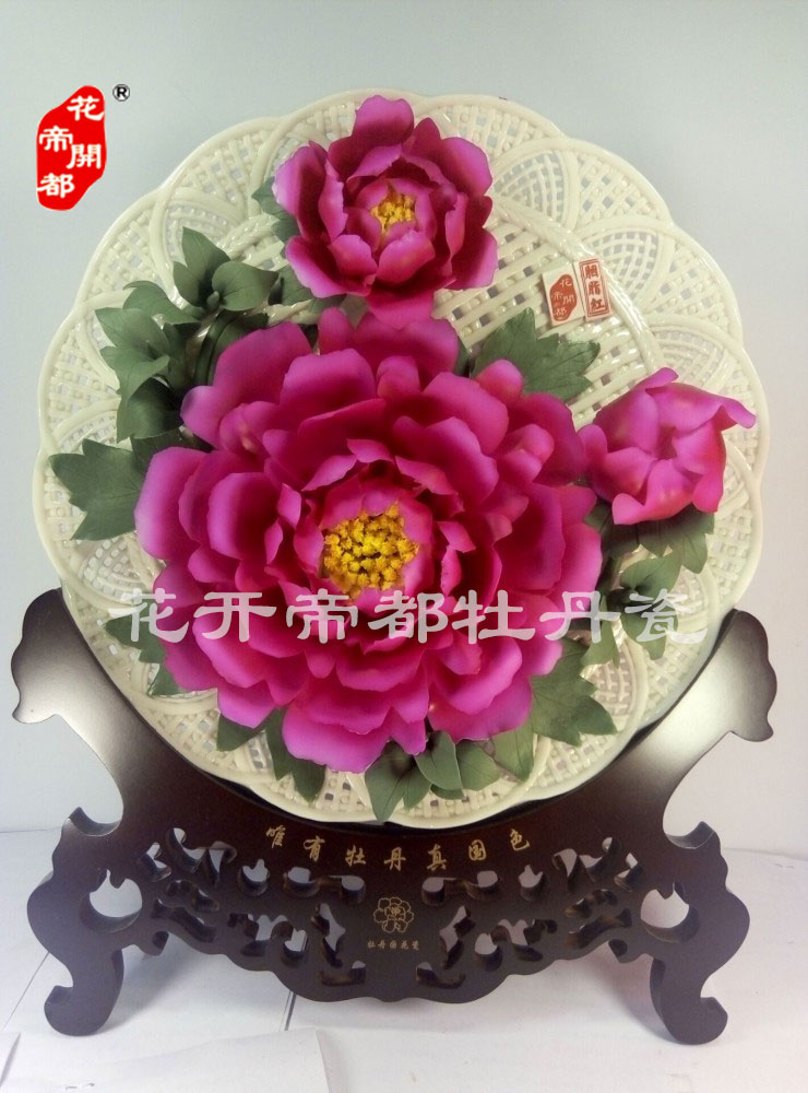 產(chǎn)品系列主要包括:牡丹瓷花盤、牡丹瓷屏風(fēng)、牡丹瓷盆景、牡丹瓷壁掛和牡丹瓷鼎,形式多種多樣!每一件作品都是藝術(shù)的結(jié)晶,花、枝、葉均是手工捏制,造型逼真生動(dòng)。