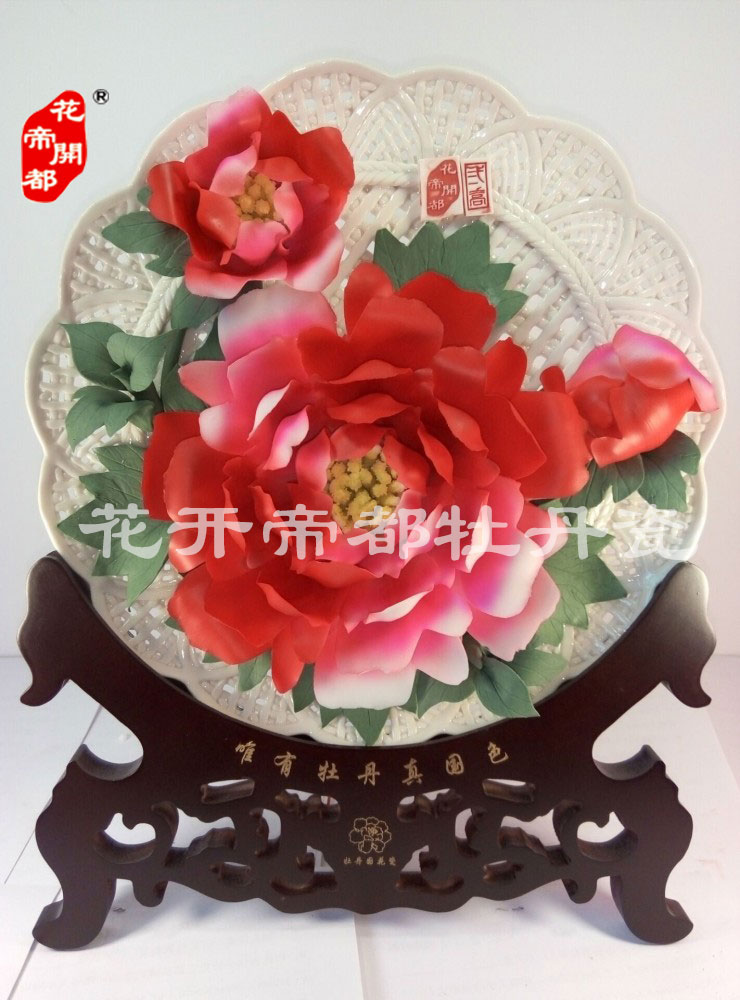 產(chǎn)品系列主要包括:牡丹瓷花盤、牡丹瓷屏風(fēng)、牡丹瓷盆景、牡丹瓷壁掛和牡丹瓷鼎,形式多種多樣!每一件作品都是藝術(shù)的結(jié)晶,花、枝、葉均是手工捏制,造型逼真生動(dòng)。