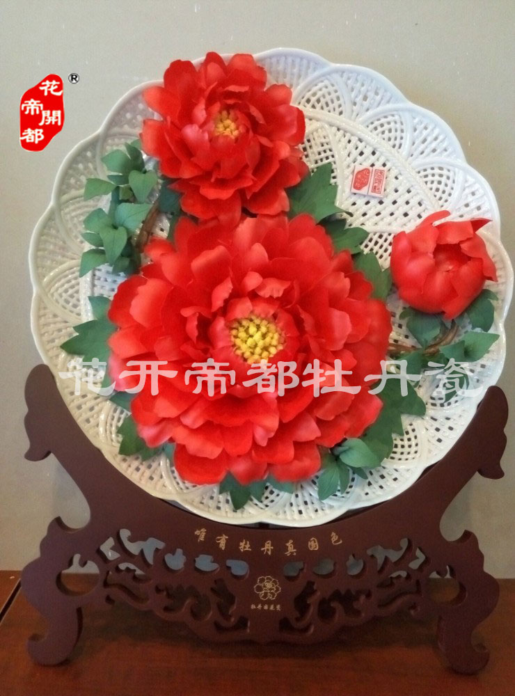 產(chǎn)品系列主要包括:牡丹瓷花盤、牡丹瓷屏風(fēng)、牡丹瓷盆景、牡丹瓷壁掛和牡丹瓷鼎,形式多種多樣!每一件作品都是藝術(shù)的結(jié)晶,花、枝、葉均是手工捏制,造型逼真生動。