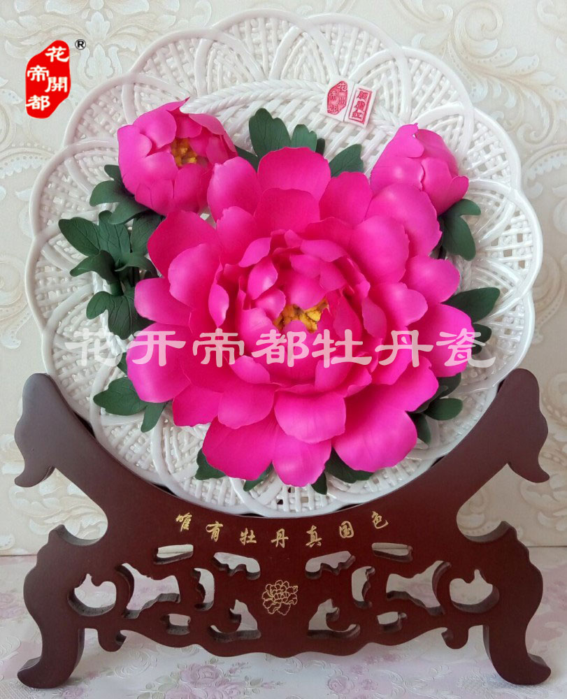 產(chǎn)品系列主要包括:牡丹瓷花盤、牡丹瓷屏風(fēng)、牡丹瓷盆景、牡丹瓷壁掛和牡丹瓷鼎,形式多種多樣!每一件作品都是藝術(shù)的結(jié)晶,花、枝、葉均是手工捏制,造型逼真生動。