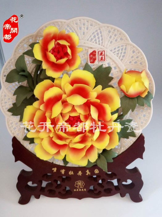 產(chǎn)品系列主要包括:牡丹瓷花盤、牡丹瓷屏風(fēng)、牡丹瓷盆景、牡丹瓷壁掛和牡丹瓷鼎,形式多種多樣!每一件作品都是藝術(shù)的結(jié)晶,花、枝、葉均是手工捏制,造型逼真生動。