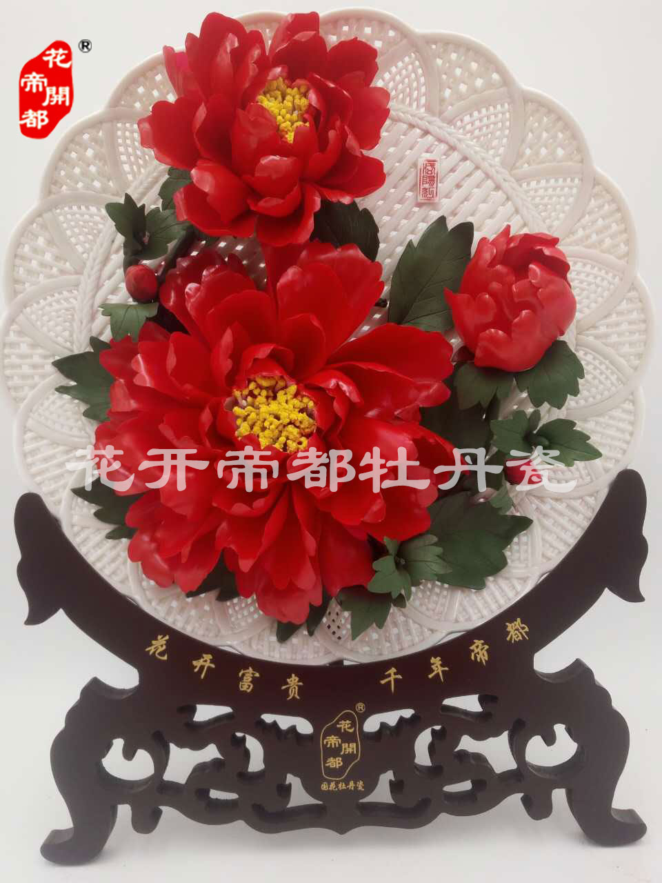 產(chǎn)品系列主要包括:牡丹瓷花盤、牡丹瓷屏風(fēng)、牡丹瓷盆景、牡丹瓷壁掛和牡丹瓷鼎,形式多種多樣!每一件作品都是藝術(shù)的結(jié)晶,花、枝、葉均是手工捏制,造型逼真生動。